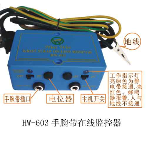 HW-603靜電環(huán)在線報警器能對防靜電手腕帶進行實時連續(xù)監(jiān)測控制。對整個接地系統(tǒng)可以實時監(jiān)測;可保障(個人.雙人或多人)防靜電工作區(qū)接地系統(tǒng)正常使用。此產(chǎn)品確保作業(yè)人員的ESD狀況獲得100%的監(jiān)測。