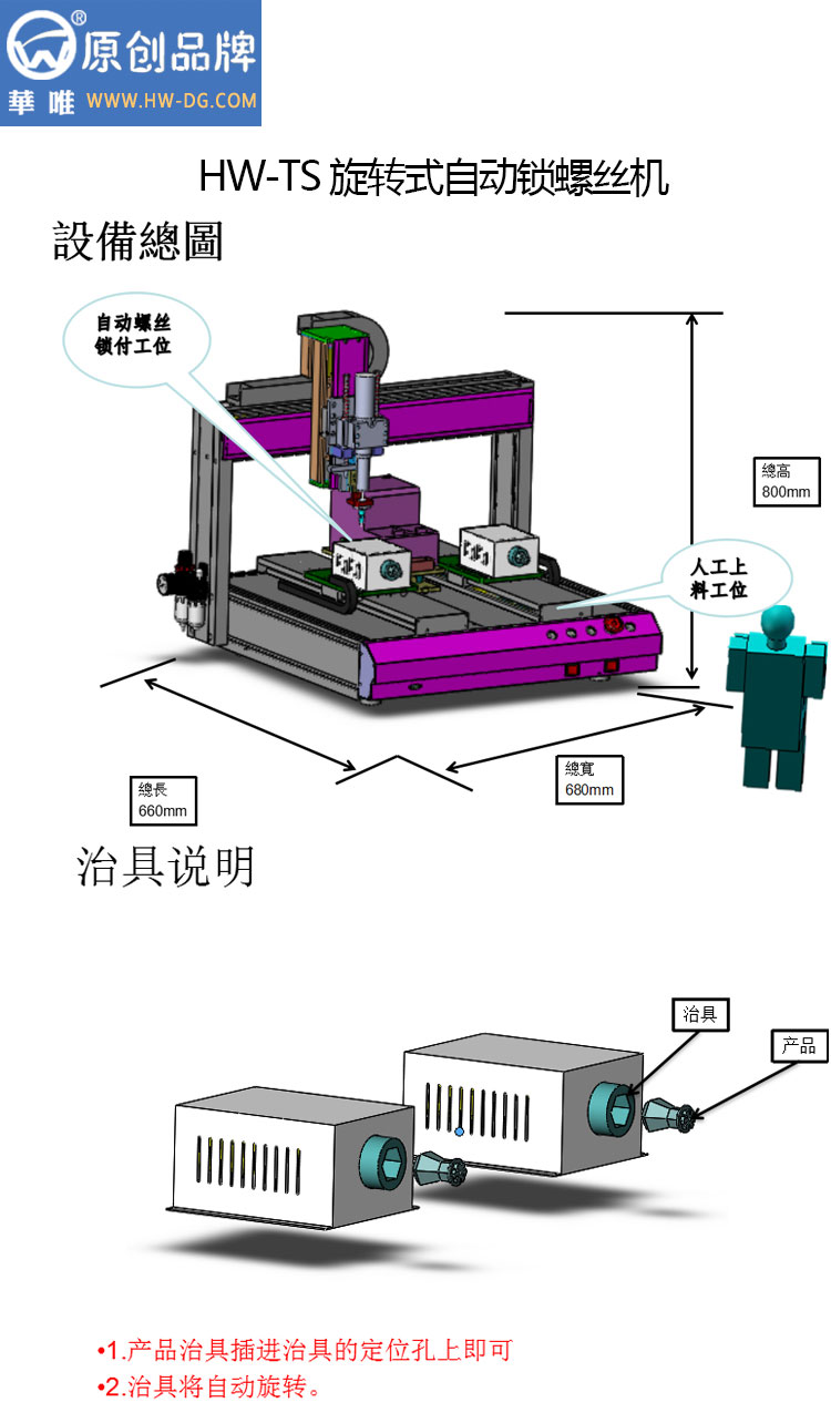 1.關(guān)於華唯品牌全自動螺絲鎖付機的使用說明